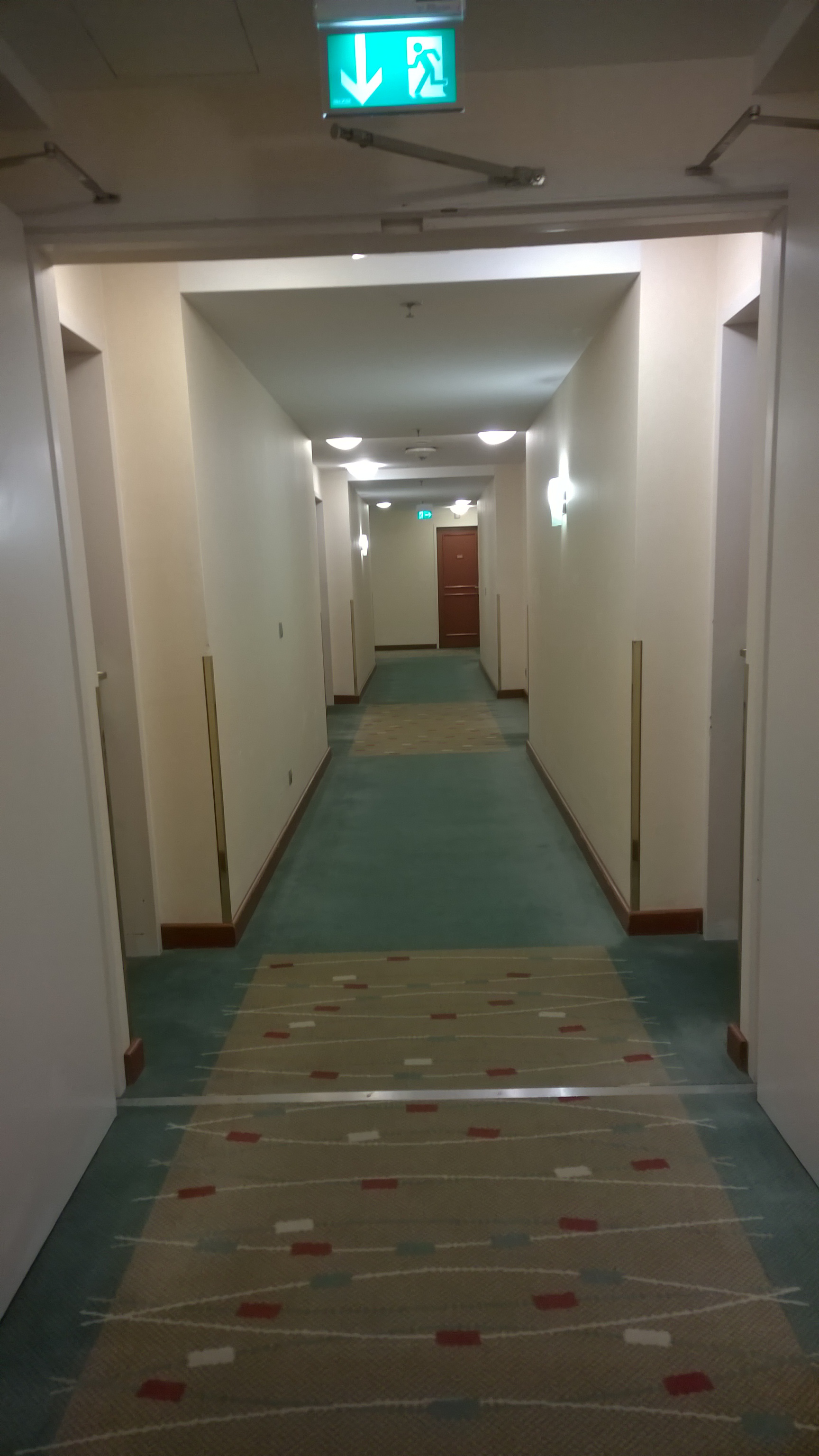 Bevor ich auf das Zimmer im Detail eingehe, möchte ich euch nur kurz demonstrieren, warum ich diesen Blog angefangen habe. Heute hatte alles wieder seine Ordnung und ich bekam eines der letzten Zimmer, hinter dem letzten Flur, am Ende von allem. Mit Gepäck, Handtasche und Laptoptasche fühlen sich manche Wege recht weit an.