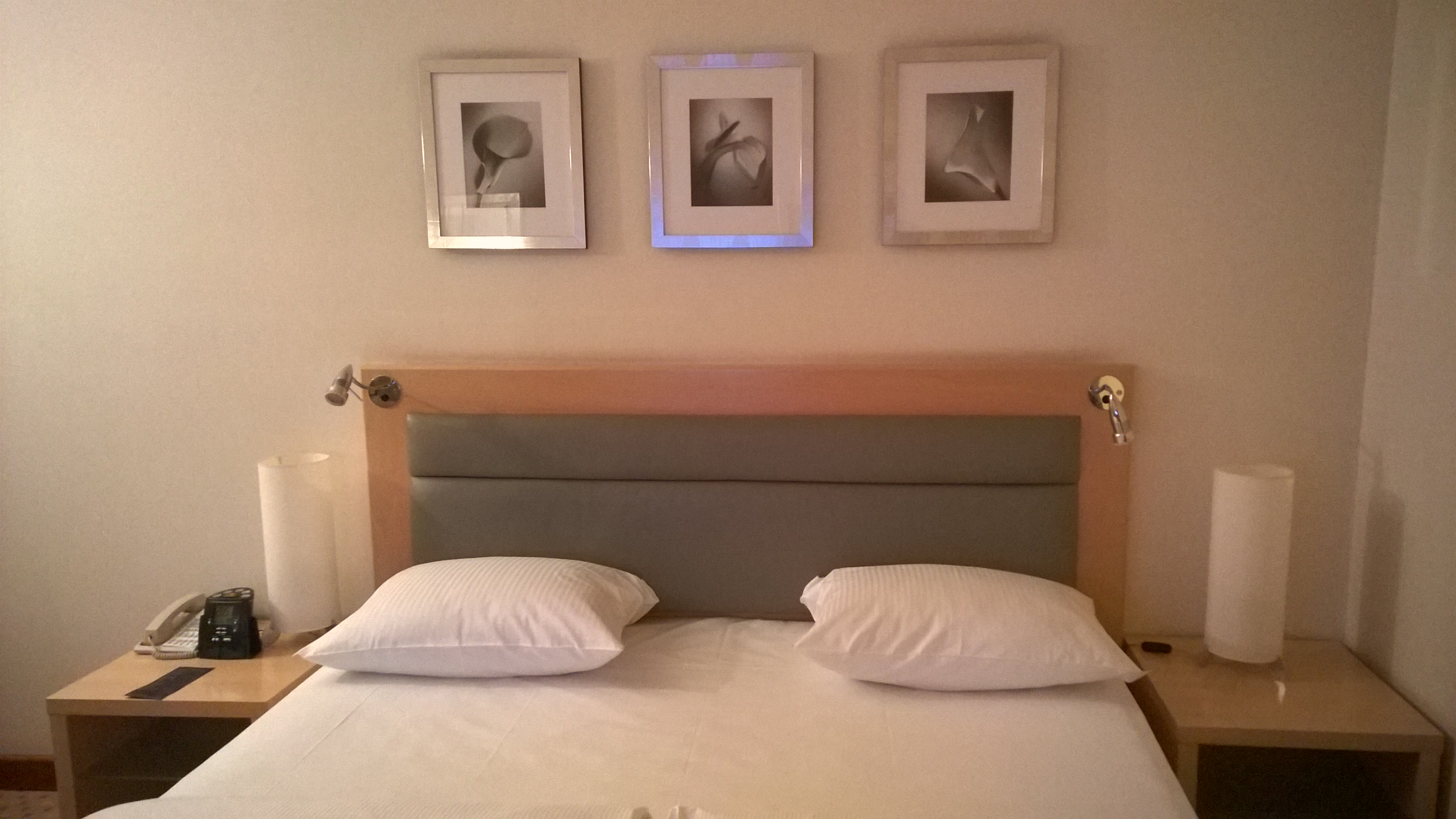 Bett und Bettwäsche: Bei mir steht und fällt einfach alles mit den Bettwaren. Ich brauche vernünftige Decken und Kissen und ein gutes Bett. Natürlich kann ich ganz entspannt auch in einem Mittelklasse Hotel wohnen oder einer schönen kleinen Pension, aber die Erfahrung zeigt mir in der Regel, dass der Preis für die kostengünstigeren Zimmer immer auf Kosten der Bettwaren geht. In diesem Zimmer war das Bett sehr gut. Wie auf dem Bild zu sehen ist, hatte ich aber leider nur zwei Kopfkissen. Die Decken waren in Ordnung und ich habe mich gleich in beide gewickelt.
