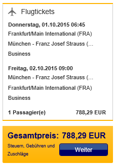 In meinen Augen reicht das nicht ganz aus. Um euch einen Wert zu geben, habe ich eben zwei Tickets konfiguriert. Der günstigste Flug Frankfurt – München – Frankfurt am 1. Oktober in der Eco und der identische Flug in der Business. Es macht einen Unterschied von 430 Euro aus. Wofür? Für Gläser? Ich würde es jedenfalls nicht machen.